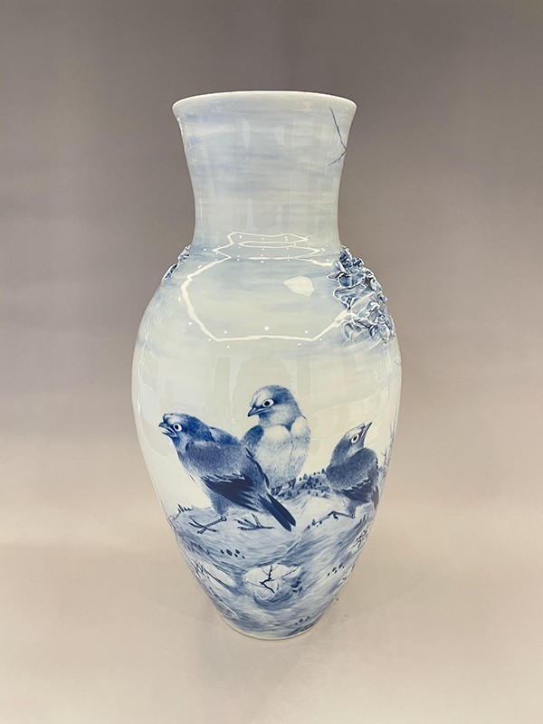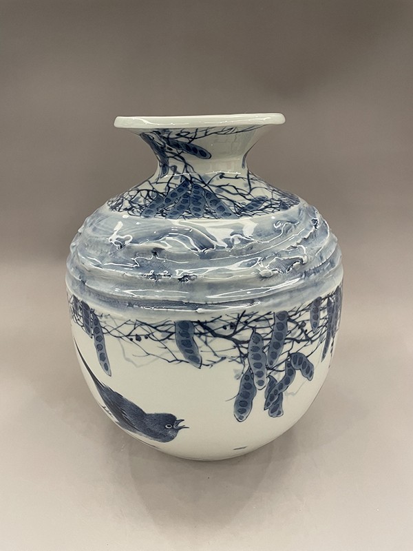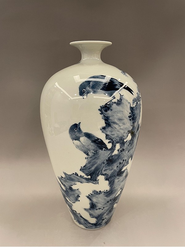 2021年,創(chuàng)作的柴窯青花瓶《松鷹圖》在第十七屆中(深圳)國(guó)際文化產(chǎn)業(yè)博覽交易會(huì)“中國(guó)工藝美術(shù)文化創(chuàng)意大賽”評(píng)選中榮獲“銀”獎(jiǎng)。