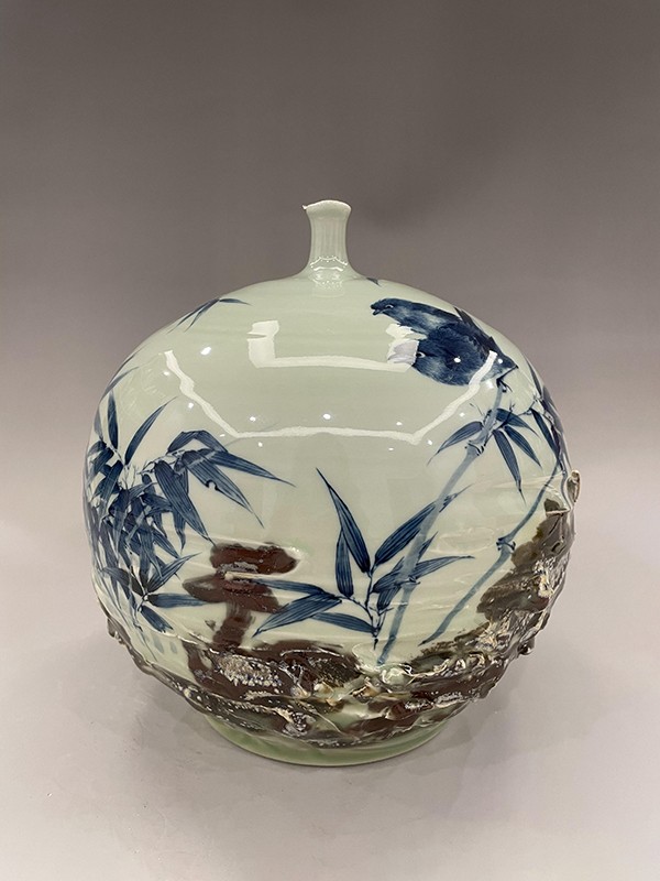 2021年青花“井岡精神代代傳”150件瓶被江西省工藝美術(shù)館收藏。